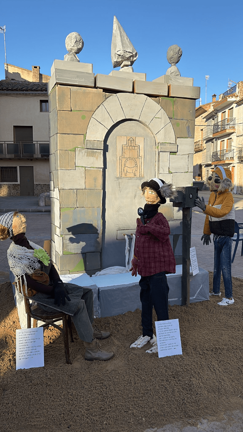 Una fuente, unos reporteros y una anciana que desafía al frío, “porque eso solo es una sensación”, bromea el alcalde. En este pueblo se alcanzan temperaturas gélidas, y esa resistencia “que solo tiene quien vive en nuestro pueblo, es el germen de esta falla que se quemará esta noche en una nueva fiesta”.