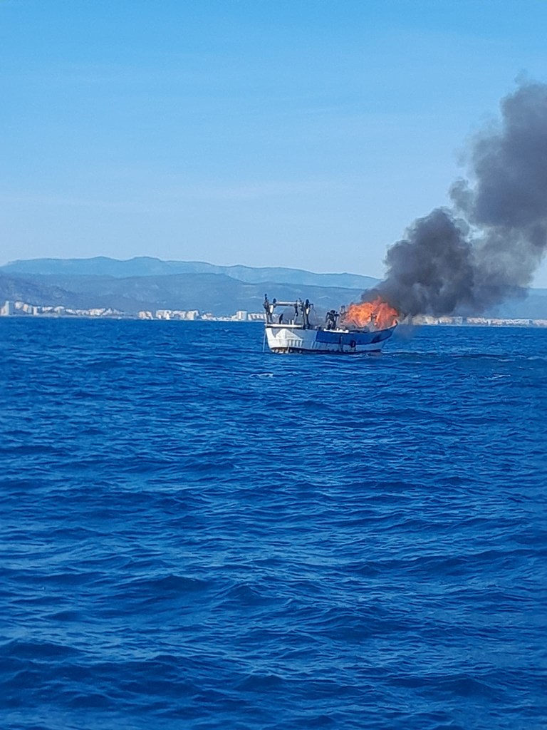 Uno de los pescadores ha sido atendido por los servicios sanitarios debido a la intoxicación provocada por el humo, dado que en el momento del rescate el barco continuaba en llamas.