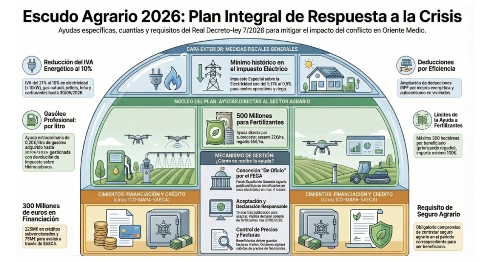 La Asociación Valenciana de Agricultores (AVA-ASAJA) calificó el paquete de ayudas al sector agrario para paliar los efectos de la guerra en Oriente Medio como “bienvenidas pero no dejarán de ser parches insuficientes si el conflicto se alarga. Los incrementos de precios de los carburantes y los fertilizantes, sobre todo los nitrogenados cuya producción y comercialización dependen en buena parte de esta zona del planeta, ya son extraordinarios y los agricultores no podremos soportar una escalada así por mucho tiempo. Cuatro millones de sobrecostes a la semana son muchos millones en una situación de rentabilidad que ya era precaria. Necesitamos que la guerra acabe cuanto antes y que la economía vuelva a la senda de la estabilidad y para ello es necesario más diálogo”.