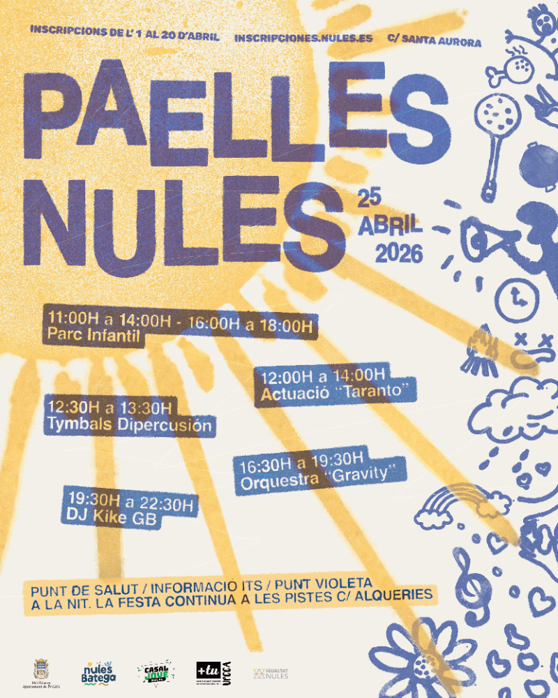 Nules cuenta ya con la programación enmarcada en la tradicional Fiesta de las Paellas que se celebrará el sábado, 25 de abril, y que contará con diferentes actividades y música en directo para todos los públicos.