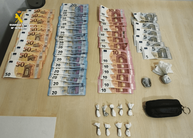 Ante los hechos, se produjo la detención del varón de 44 años de edad como presunto autor de un delito contra la salud pública (tráfico de drogas) y a la aprehensión de las sustancias y dinero.