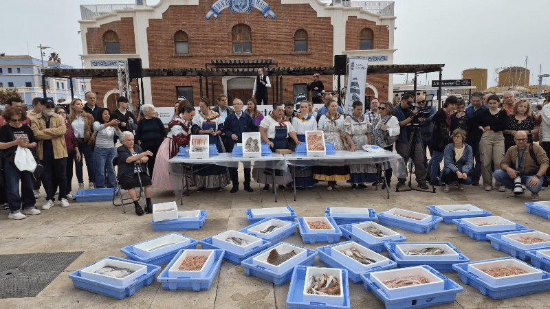 Durante la jornada se han subastado 150 kilos de pescado, en una demostración que ha vuelto a despertar el interés del público y que refleja la estrecha vinculación del Grao con el mar y con su tradición pesquera.