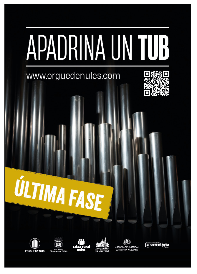 La Associació l’Orgue de Tots pretende con ello recuperar una parte perdida del patrimonio de Nules a través de una campaña de apadrinamiento de tubos. Y es que se tiene constancia de la existencia de un órgano en la Iglesia Mayor del municipio al menos desde el año 1563 pero que en 1938, a consecuencia de la Guerra Civil, se perdió.