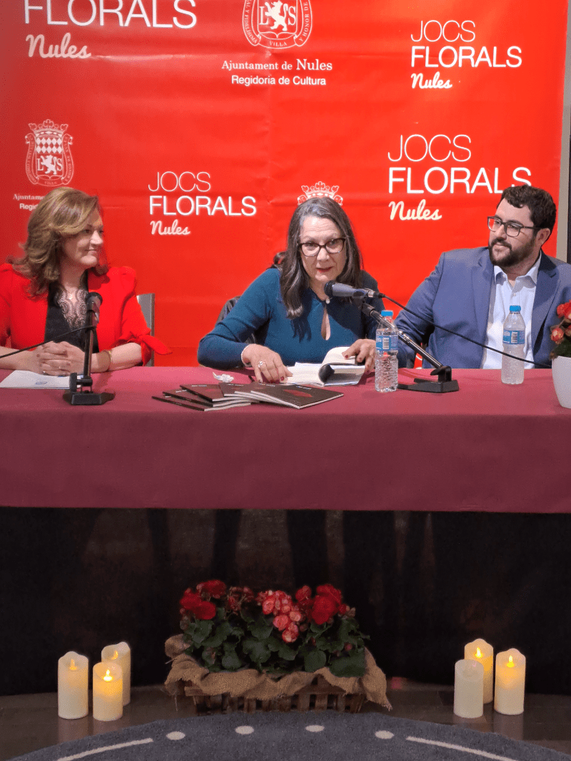 El acto ha estado protagonizado por la misma autora quien ha leído algunos fragmentos de la obra “Jo am”, además ha contado también con la presencia del Alcalde de Nules, David García, la Concejal de Cultura, M. José Esteban, la Reina de la Vila, Laura Gómez, y las damas de la Vila, de los concejales y concejalas de la Corporación Municipal, de los miembros del jurado de los Juegos Florales, y de los patrocinadores de los premios. Asimismo, el acto ha servido también para presentar las bases de la próxima edición de los Jocs Florals Vila de Nules.