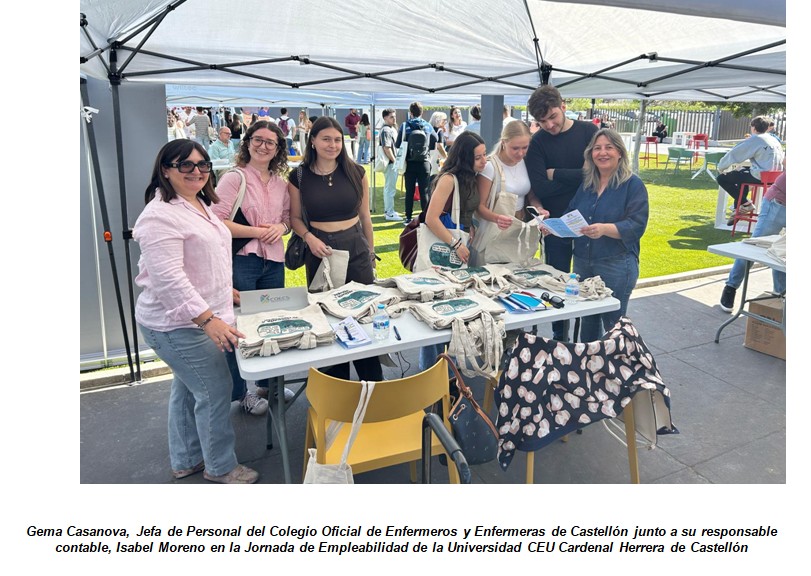 El Colegio Oficial de Enfermeros y Enfermeras de Castellón (COECS) ha participado hoy a la Jornada de Empleabilidad organizada por la Universidad CEU Cardenal Herrera de Castellón para ofrecer asesoría directa a los estudiantes de último curso. La entidad colegial —representada por su jefa de personal, Gema Casanova, y su responsable contable, Isabel Moreno— han informado a los futuros profesionales sobre los trámites necesarios para incorporarse al mundo laboral y detallado la amplia cartera de servicios que ofrece la institución en este año 2026.