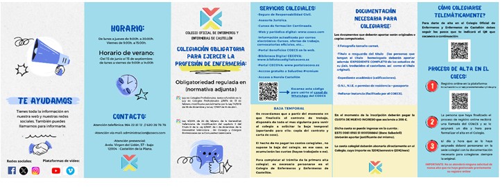 Folleto de Servicio del Colegio Oficial de Enfermeros y Enfermeras de Castellón