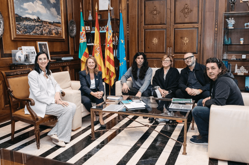 La alcaldesa, Begoña Carrasco, se reúne con el director de la Escola d’Art i Superior de Disseny, David Marqués, y otros integrantes del centro educativo.