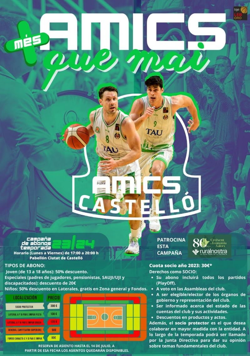 El Amics Castelló pondrá el próximo lunes 3 de julio en marcha la campaña de abonados para la nueva temporada 2023-2024, con la intención de seguir creciendo en el aspecto social.