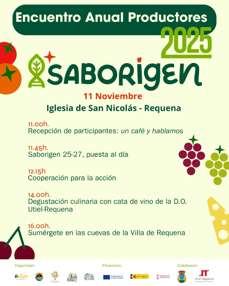 El proyecto agroalimentario Saborigen ha celebrado hoy, 11 de noviembre, su segundo Encuentro Anual de Productores, una cita que ha congregado a decenas de productores, transformadores y profesionales del sector agroalimentario de la Comunitat Valenciana.