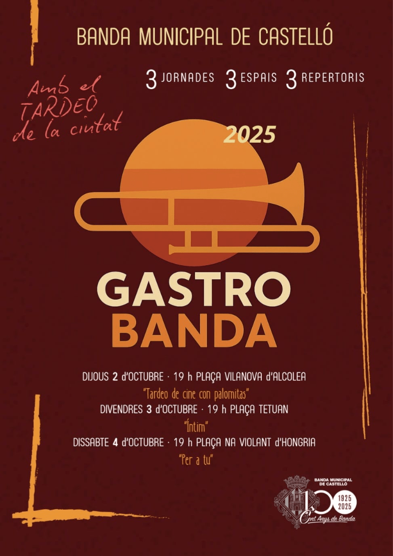 La Banda Municipal de Castellón actuará los días 2, 3 y 4 de octubre en las plazas Vilanova de Alcolea, Tetuán y Na Violant