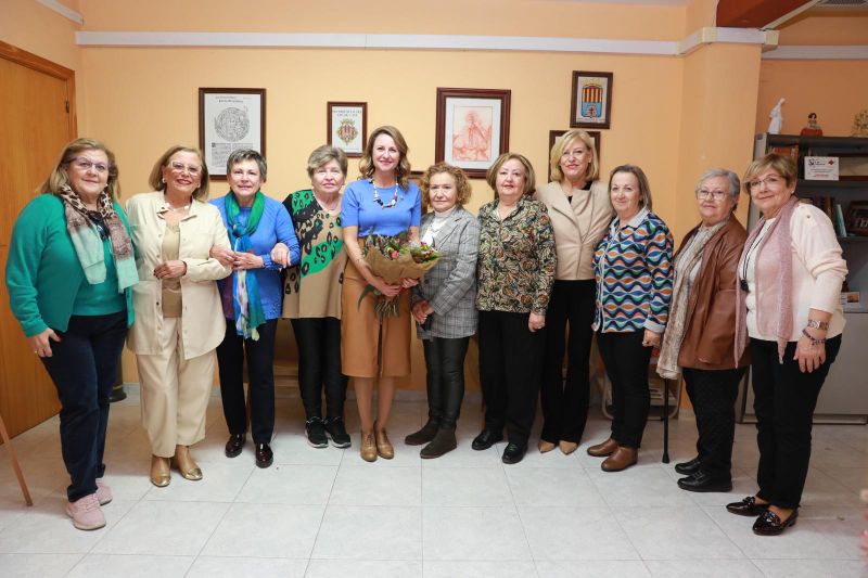 La alcaldesa de la ciudad, Begoña Carrasco, junto a la concejala de Gente Mayor, Clara Adsuara, ha felicitado la Navidad a las mujeres de la Asociación y Federación de Amas de Casa Lledó que se han reunido este martes en el ya tradicional taller floral que realizan cada año con motivo de las fiestas navideñas.