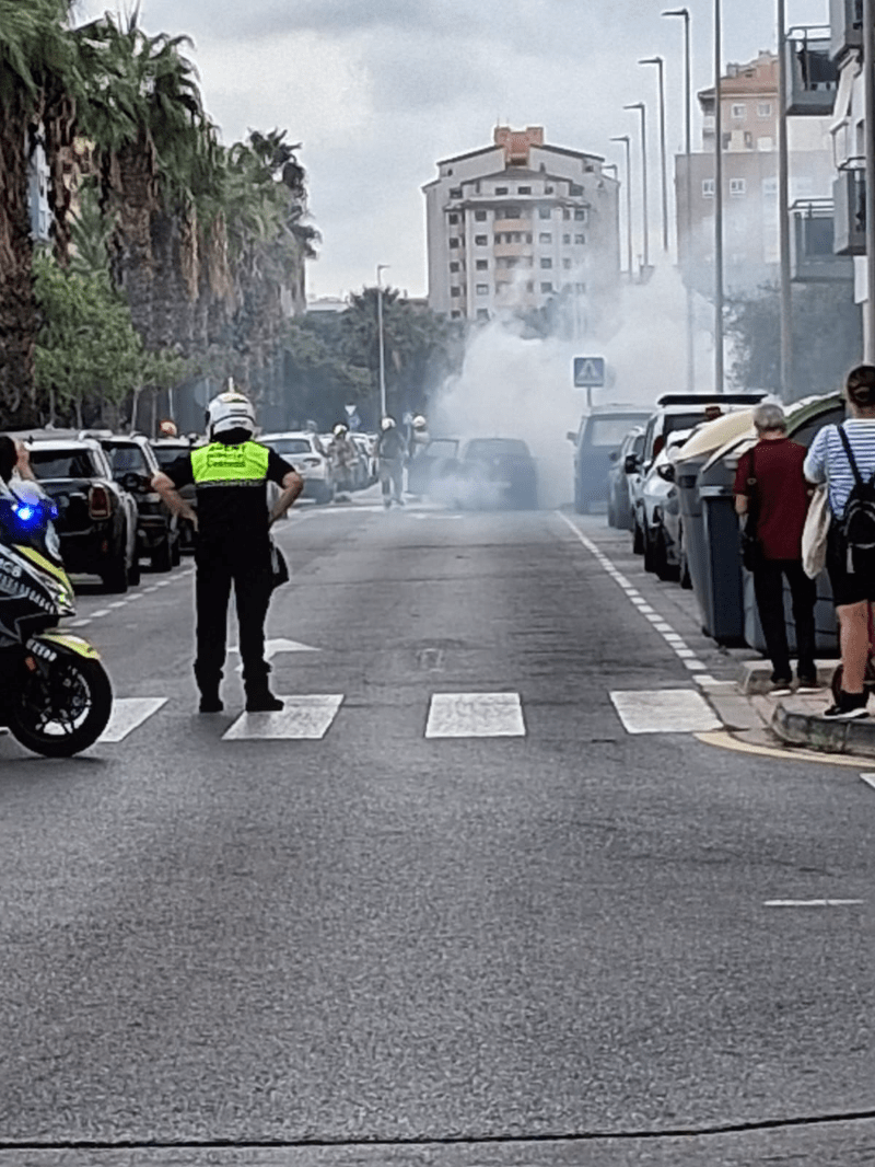 Alrededor de las 18.00 horas un coche ardía en mitad de la calle