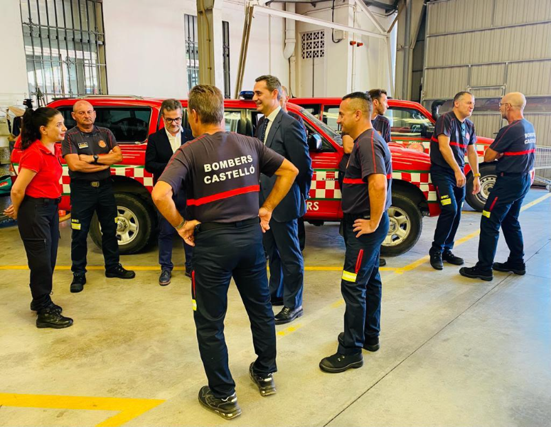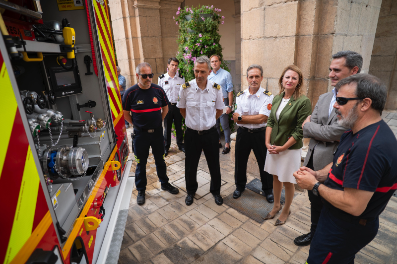 La alcaldesa de Castellón, Begoña Carrasco, y el concejal de Seguridad y Emergencias, Antonio Ortolá, han presentado en la plaza Mayor siete nuevos vehículos que refuerzan la flota del cuerpo municipal de Bomberos de Castellón al que hay que sumar una moto acuática que hoy se encontraba en la playa con motivo de unas prácticas de rescate