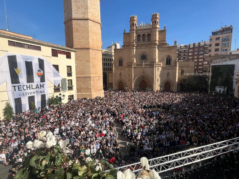 Pantalla grande instalada en la plaza Mayor, dentro de la campaña Black and White friday