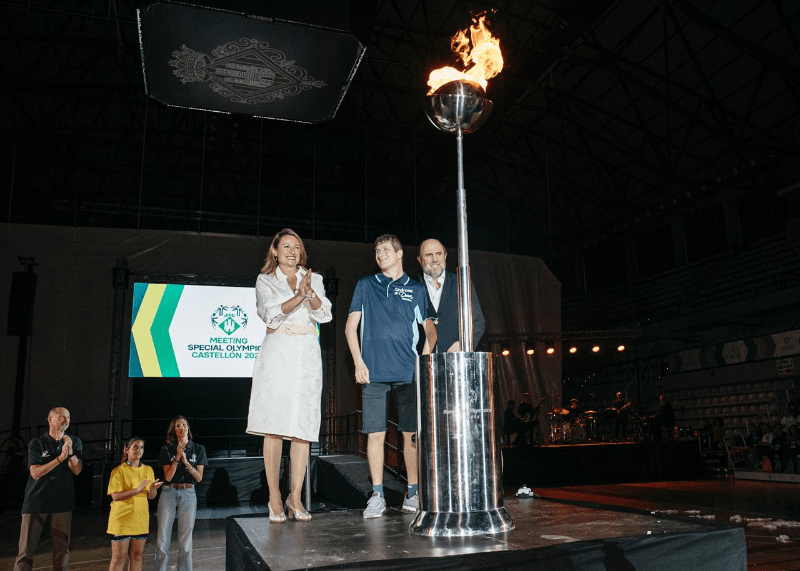 Alumnado de Educación Especial de Penyeta Roja entregan la antorcha a la presidenta de la Diputación de Castellón. “Un momento cargado de significado que nos recuerda la importancia de la inclusión y el espíritu de superación que caracteriza a las personas con discapacidad”, señala Marta Barrrachina