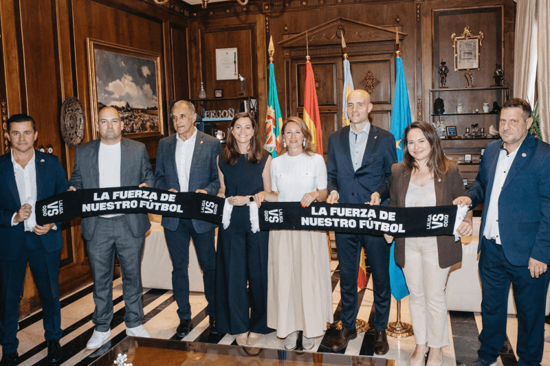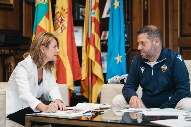 La alcaldesa de Castellón, Begoña Carrasco, recibe también a representantes del CD Castellón y el Real Sporting de Gijón, previo al encuentro de esta noche correspondiente a la Liga Hypermotion en el Estadio Skyfi Castalia