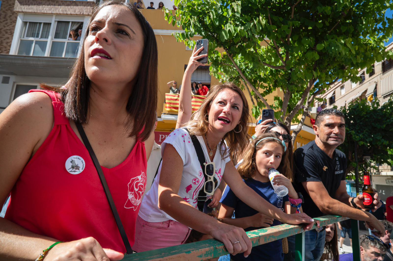 La alcaldesa, junto a la teniente de alcalde del Grao, y otros concejales ha asistido este domingo al encierro de toros cerriles, uno de los actos con más acogida de las fiestas del distrito marítimo