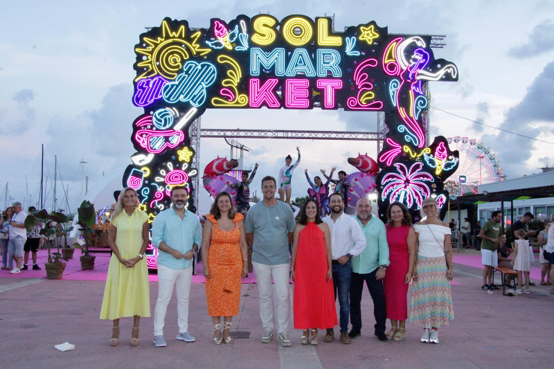 El primer teniente alcalde, Sergio Toledo, junto a otras autoridades, ha participado en el encendido oficial del pórtico luminoso del Sol Market.