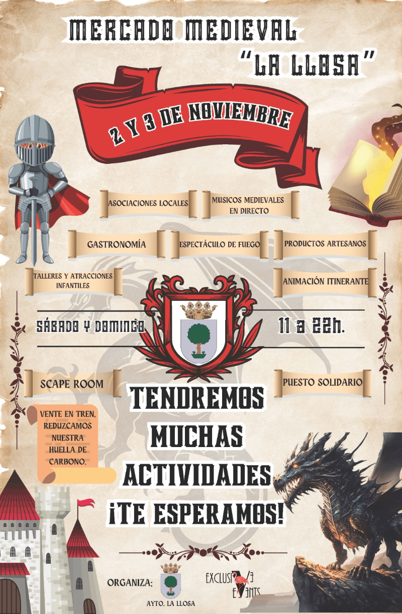 El fin de semana del 2 y 3 de noviembre La Llosa regresará al medievo con la celebración de su ya tradicional Mercado Medieval.
