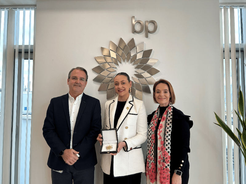 La concejala de Fiestas, Noelia Selma, ha acompañado a la reina de las Fiestas, Paula Torres, en la recepción por parte de la empresa bp en las instalaciones de la firma en el Grau.