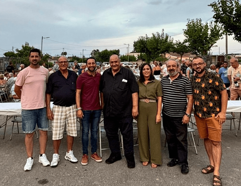 La teniente de alcalde del Grao, Ester Giner, acompañada por el primer teniente de alcalde y concejal de Urbanismo, Sergio Toledo, y el concejal de Salud Pública, Luciano Ferrer, además de otros concejales, ha participado en la cena que los vecinos de la Marjalería han celebrado hoy con motivo de sus fiestas de verano.