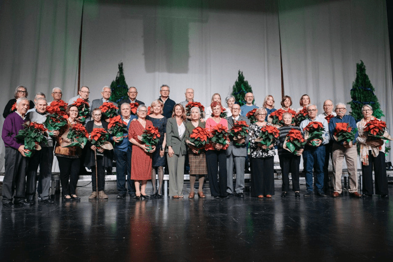 Más de 800 personas se han dado cita en el Palau de la Festa para celebrar una merienda de hermandad con motivo de la llegada de la Navidad.