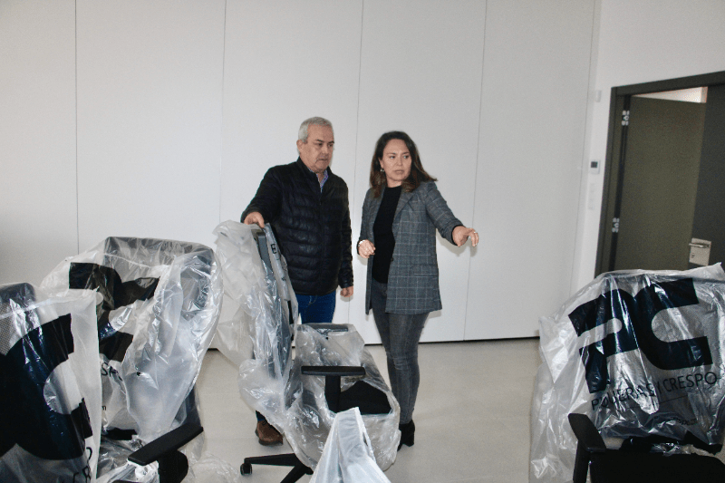 La concejala de Bienestar Social, Maica Hurtado ha acompañado al presidente de la Asociación de Parkinson de Castellón, Alfonso Segura en la puesta a punto del interior del nuevo centro de día que ya empieza a recibir el mobiliario de las salas de atención personalizada.