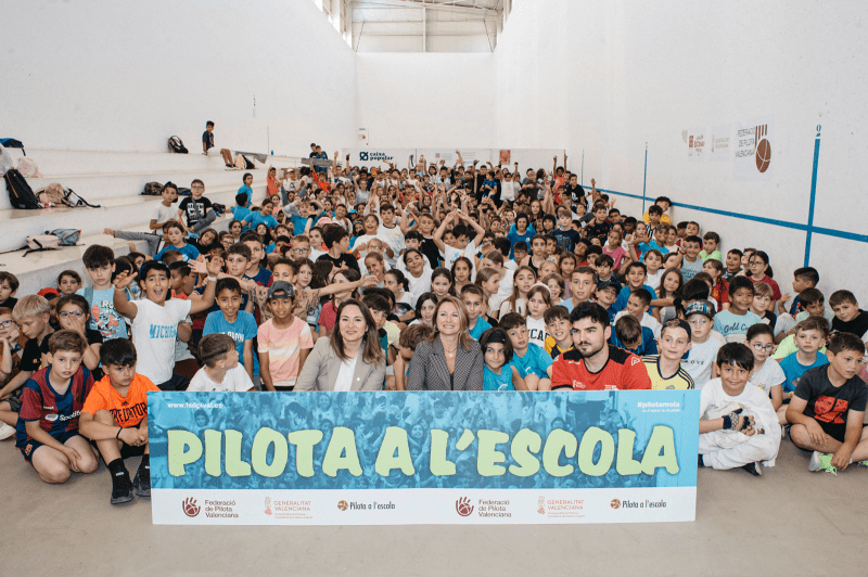 La alcaldesa, Begoña Carrasco, acompañada de la concejala de Deportes, Maica Hurtado, ha mostrado su apoyo a la Federació de Pilota Valenciana en la ‘Trobada de Pilota a l’Escola’ que ha tenido lugar este martes en el Parc Esportiu Sindical.