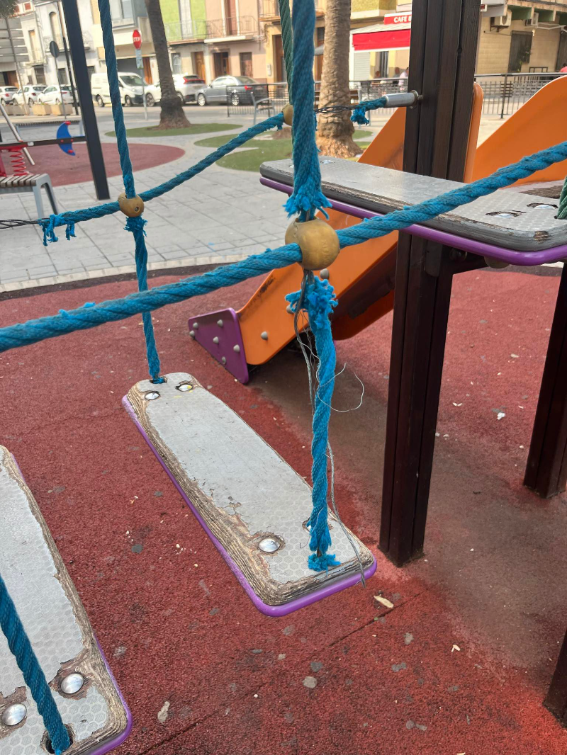 La regidora del PP, Susana Sorribes, lamenta que la falta de mantenimiento periódico origine daños que no se reparan y estos provoquen peligros entre los usuarios de las zonas de ocio
