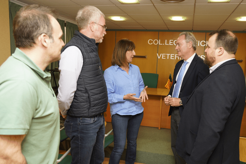 Los diputados en el Congreso por el PP, Alberto Fabra y Óscar Clavell, junto al diputado autonómico Alejo Font de Mora, se reúnen con la presidenta del Colegio Provincial de Veterinarios, Natalia Gil, y su secretario, José Manuel Martín