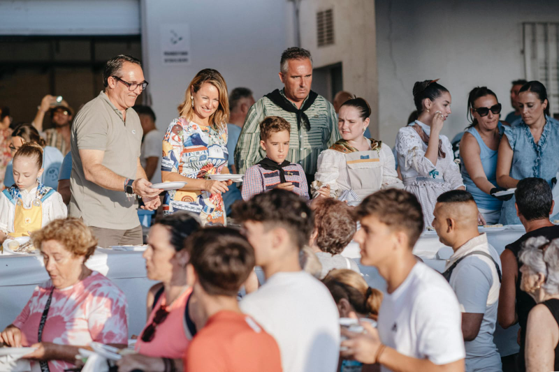 La alcaldesa de Castellón, Begoña Carrasco, acompañada por la teniente de alcalde del Grau, Ester Giner, y del resto del gobierno y la corporación municipal, ha participado en en el tradicional ‘sopar de pa i porta’ que ha tenido lugar en el Moll de Costa, dentro de la celebración de las fiestas de Sant Pere 2025, llegando así al ecuador de la Semana Santa de la fiestas en el distrito marítimo.