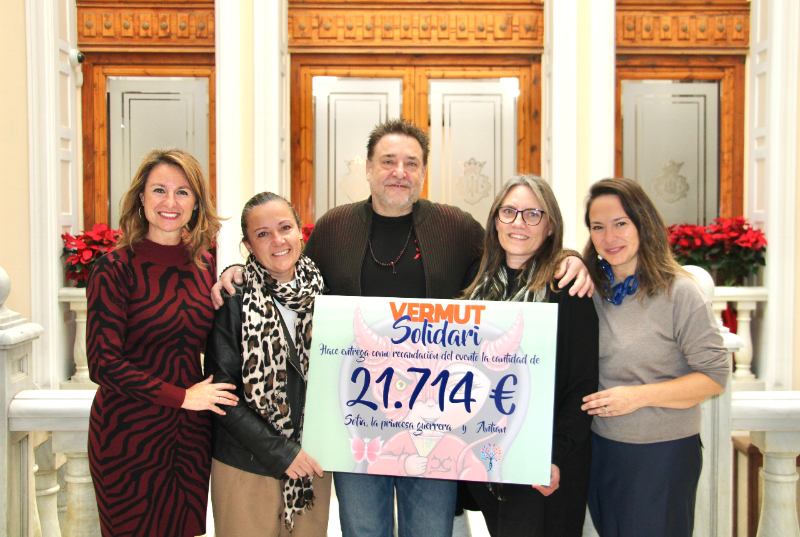 alcaldesa de Castellón, Begoña Carrasco, ha estado presente esta tarde en la entrega simbólica del cheque a la “Fundación Antian” y a la asociación “Sofía, la princesa guerra” con la recaudación conseguida en el Vermut Solidario celebrado el pasado 23 de noviembre en la Plaza Mayor, organizada por “Diables de Castelló”, con la colaboración del Ayuntamiento de Castellón. La cantidad recogida fue de 21.714 euros.