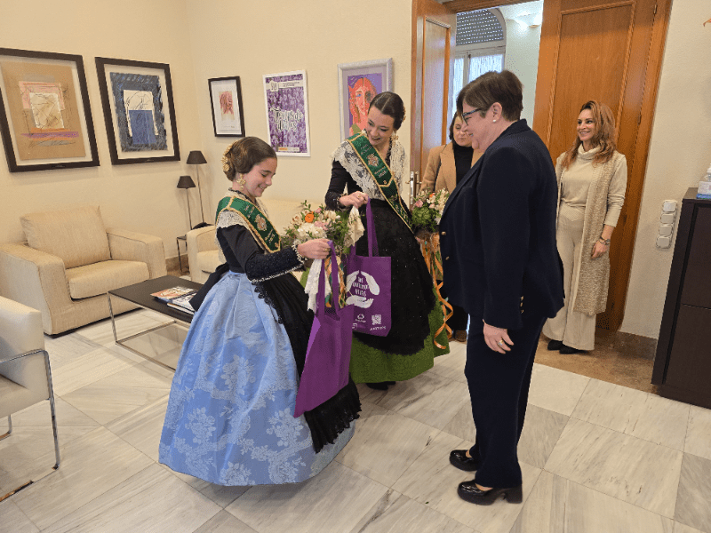 La subdelegada del Gobierno en Castellón, Antonia García Valls ha recibido, ésta mañana, en la sede de la Subdelegación del Gobierno en Castellón, a las reinas de las fiestas de la Magdalena 2025 Paula Torres Claramonte y Carla Ibáñez Fabra.