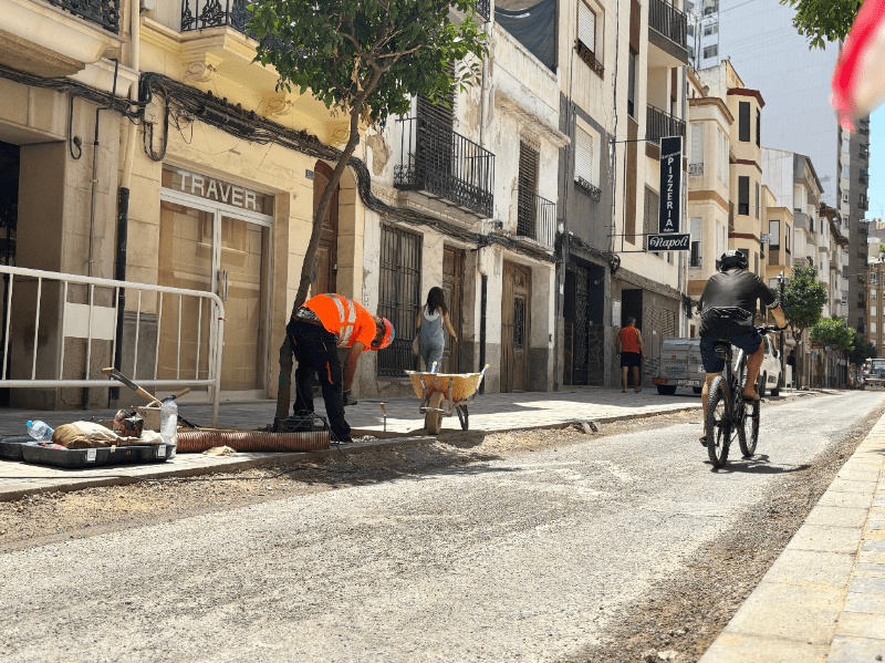 En la calle San Vicente, la semana pasada comenzaron los trabajos de la primera fase, el tramo comprendido entre av. Rey don Jaime hasta la calle Joan Fuster.